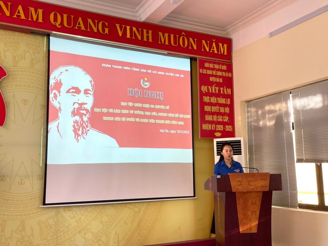 Ngày 18/5/2022, Huyện đoàn Hải Hà tổ chức hội nghị học tập quán triệt tuyên truyền về nội dung 02 chuyên đề học tập tư tưởng, đạo đức, phong cách Hồ Chí Minh trong cán bộ đoàn, đoàn viên, thanh niên.