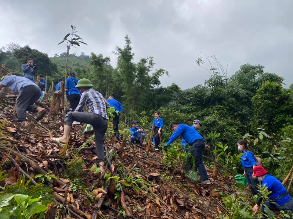 Kết thúc chương trình, các đại biểu, khách quý và toàn thể các ĐVTN đã cùng ra quân thực hiện chương trình trồng rừng gỗ lớn tại thôn Tầm Làng và hỗ trợ hộ nghèo xây dựng nhà vệ sinh đạt chuẩn tại thôn Nà Thổng – xã Quảng An.