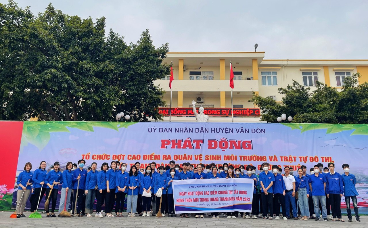 Sáng ngày 12/3, tại sân vui chơi TTN huyện Vân Đồn, Huyện đoàn Vân Đồn triệu tập 70 đoàn viên, thanh niên tham gia hưởng ứng Lễ phát động tổ chức đợt cao điểm ra quân vệ sinh môi trường và trật tự đô thị, trật tự an toàn giao thông (đường bộ, đường thủy) trên địa bàn huyện Vân Đồn – Đợt 1 năm 2023.