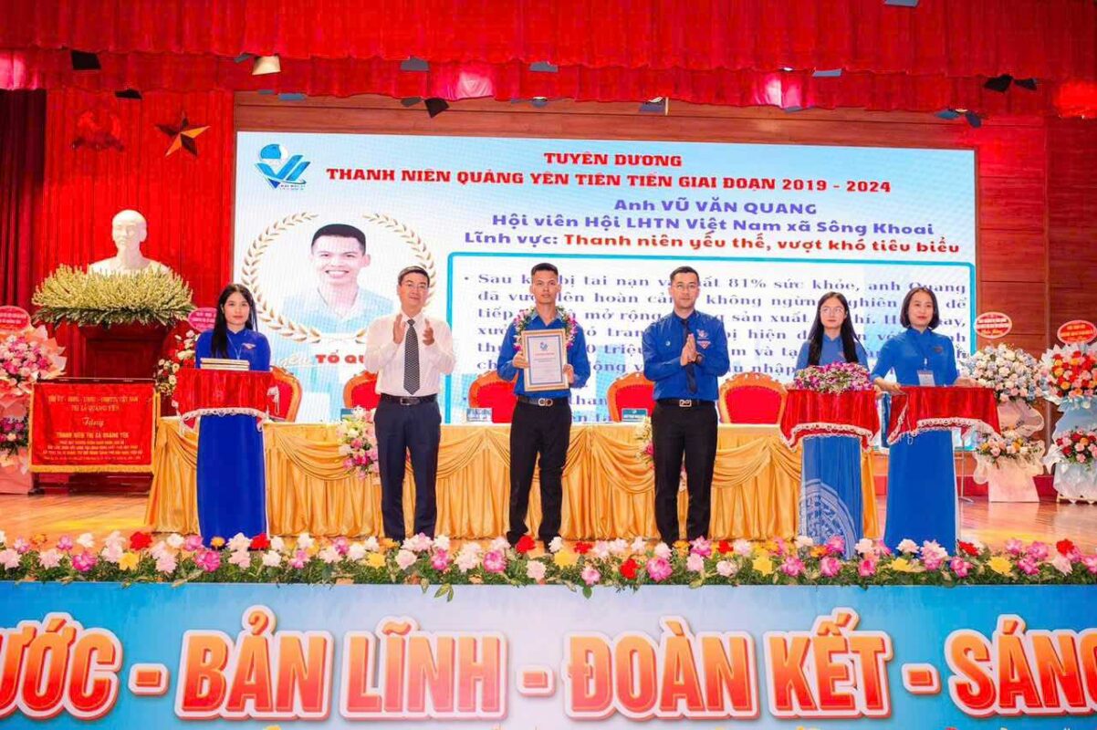 Từ 2 bàn tay trắng anh Vũ Văn Quang đã mở xưởng cơ khí của riêng mình. Tai nạn lao động và nghị lực sống của anh Quang đã truyền cảm hứng cho nhiều thanh niên, đặc biệt là những người cùng cảnh ngộ vươn lên trong cuộc sống. Những hành động, việc làm, sự nỗ lực không ngừng của anh Vũ Văn Quang đã được các cấp đoàn ghi nhận đánh giá cao và anh đã vinh dự được Hội LHTN TX Quảng Yên tuyên dương khen thưởng là thanh niên tiên tiến giai đoạn 2019 -2024.